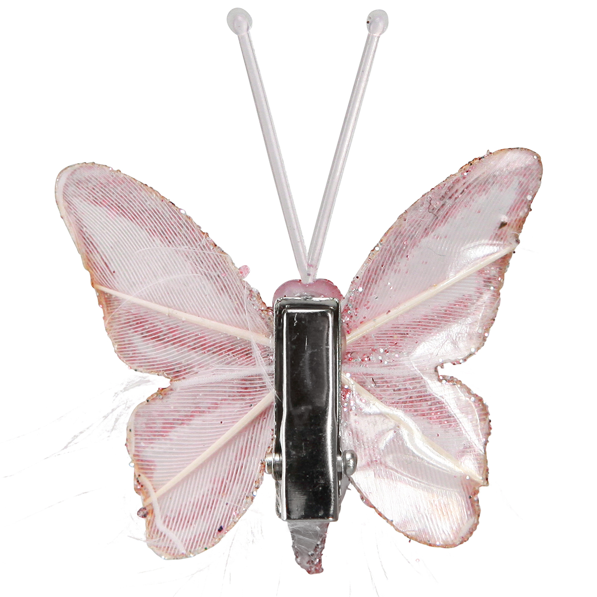 Feder Schmetterling Deko Clip Rosa Weiß 5x4,5cm 4 St