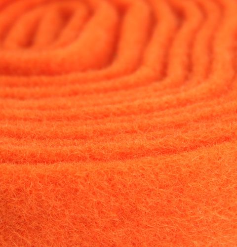 Das Filzband in Orange hat eine Länge von ungefähr 5 Metern und eine Breite von circa 7,5 Zentimetern.