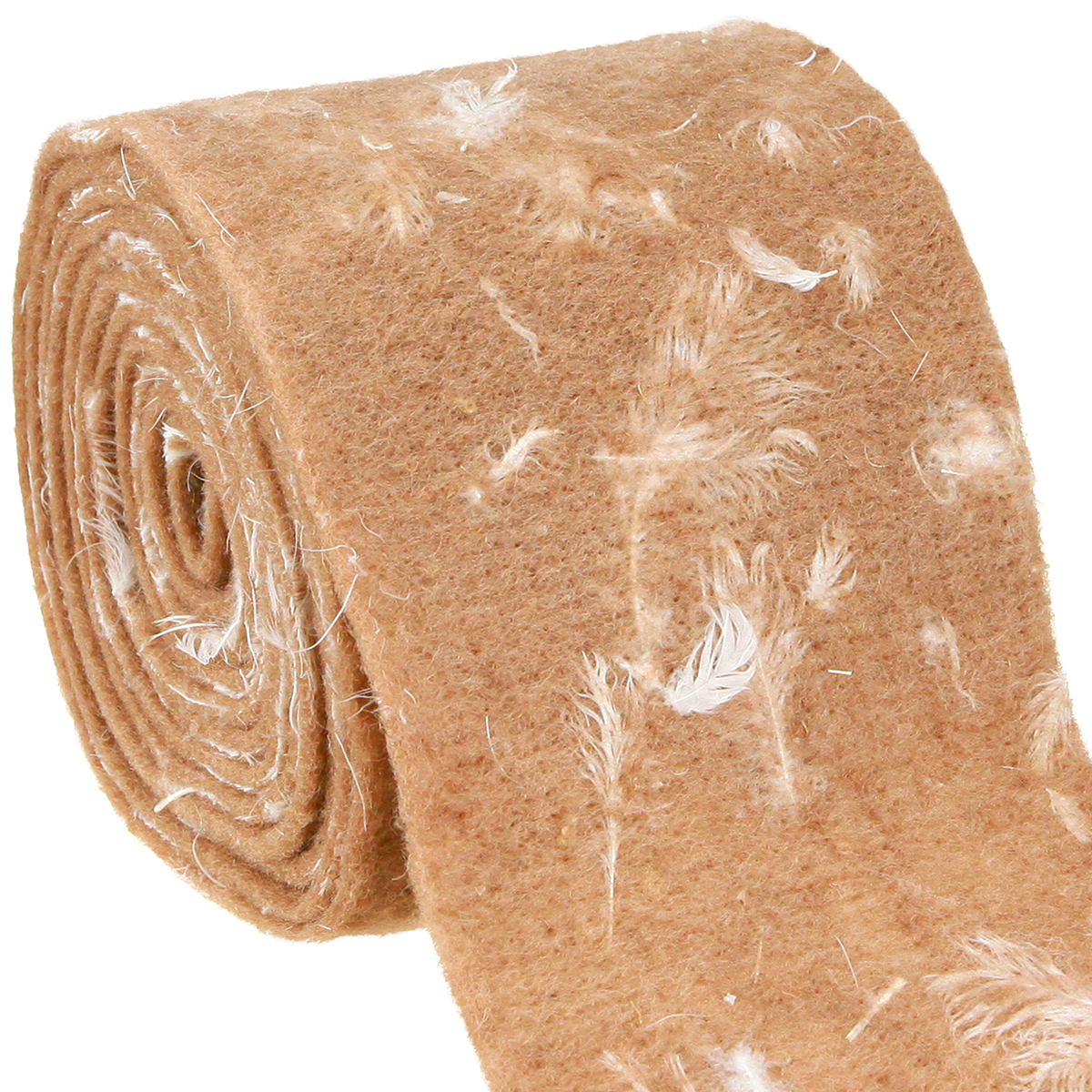 Produktname: Filzband Wollband Dekostoff Braun Federn Wollfilz 15cm 5m