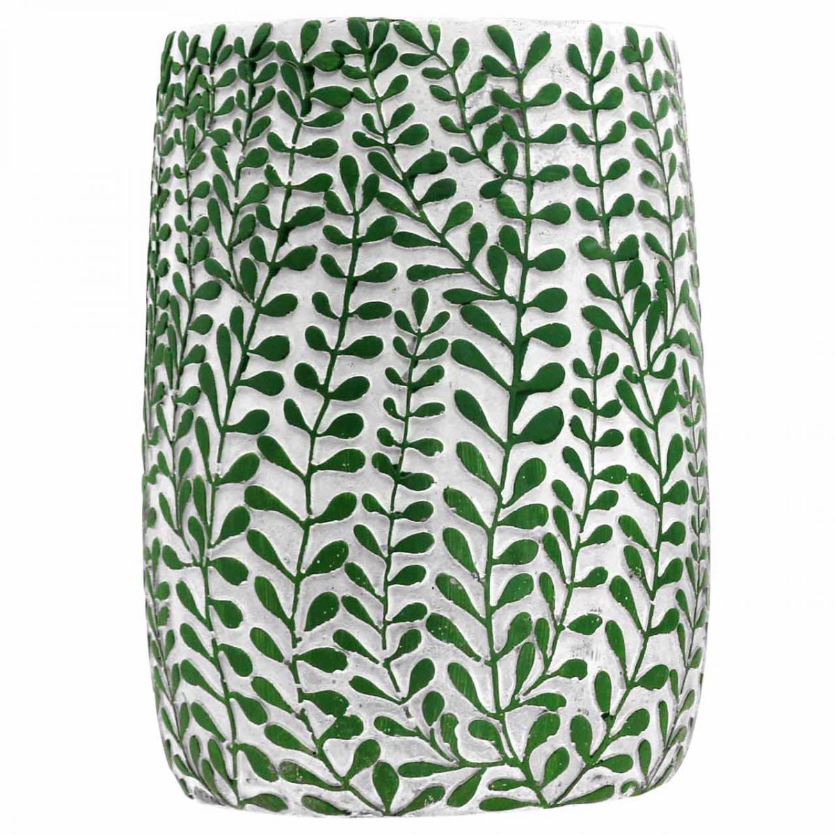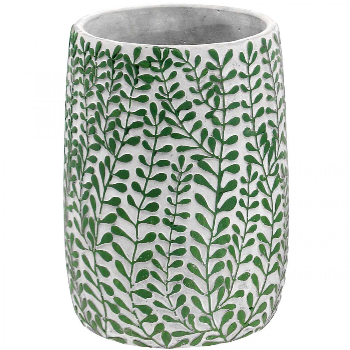 Diese florale Deko-Vase ist ein Keramikgefäß für Ihre Tischdeko, welches Sie durch das ganze Jahr begleitet. Rundum ist die leicht bauchige Vase mit grünen Blätterranken verziert, die scheinbar an ihr hinaufwachsen. Das grüne Rankendekor hebt sich nicht nur dreidimensional sondern durch seinen kräftigen Farbton auch kontrastreich von der schlichten Keramikvase in grauer Betonoptik ab.Seine originelle Optik macht die Deko-Vase zu einem hübschen Accessoire, das vielfältig eingesetzt werden kann.