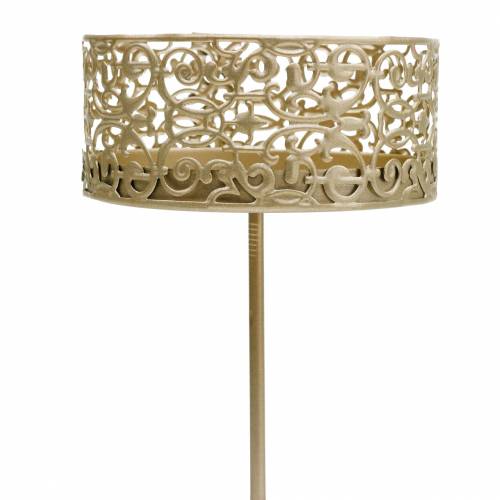 Filigrane Kerzenhalter mit floralem Muster in Gold bringen einen orientalischen Touch in ihr Zuhause. Stellen Sie Stumpenkerzen oder Teelichter in die romantischen Metallleuchter mit gestanztem Blumenmuster und verzieren Sie damit ansprechende Tischgestecke für eine Hochzeitsfeier oder einen Adventskranz als Tischschmuck für die Vorweihnachtszeit!Jeder der goldfarbenen Kerzenhalter besitzt einen langen Metalldorn, womit die Kerzenständer bequem in die unterschiedlichsten Untergründe eingesteckt werden können. Ob in Erde, Sand, Steckmasse, Styropor oder einen Strohkörper, die stabilen Steckdorne finden überall guten Halt!