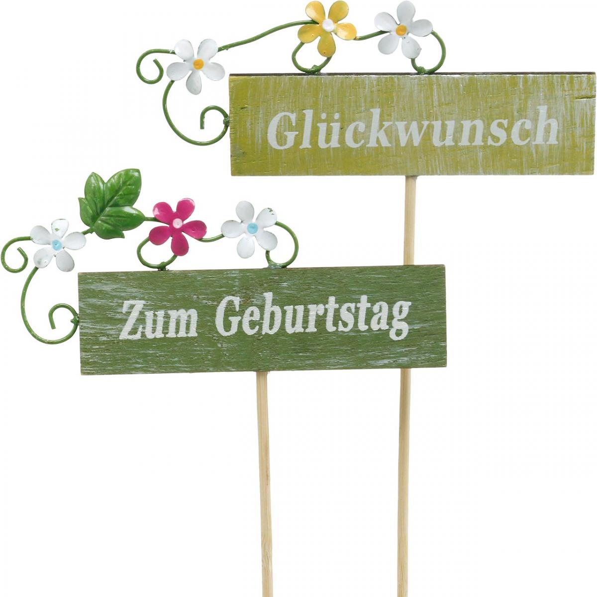 Floraler Dekostecker für verschiedene Anlässe, Holzschild mit Aufschrift, Blumenstecker 6St
