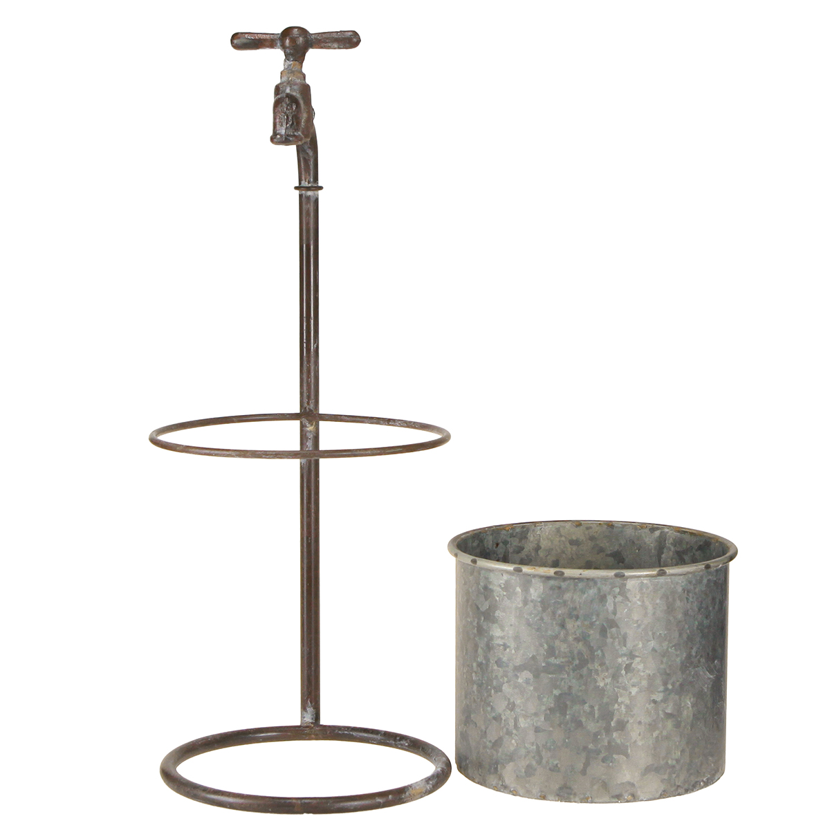 Gartendeko Metall Übertopf mit Wasserhahn Ø16,5cm H42cm
