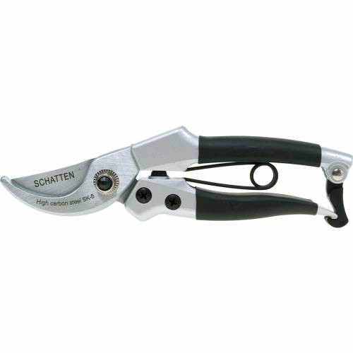 Der Griff ist gummiert für sicheren Halt, während die Klingen aus speziell gehärtetem, kohlenstoffreichem Stahl SK-5 gefertigt sind. So gelingen Ihnen nicht nur Schnitte an Blumenstielen, sondern auch an Gehölzen. Die Feder, welche in die Griffe integriert wurde, erlaubt es, dass sich die Griffe leicht öffnen, sodass Sie beim Schneiden Ihrer Pflanzen Kraft sparen können. Durch die Verriegelung am Ende der Griffe können Sie die Floristenschere immer sicher verstauen.