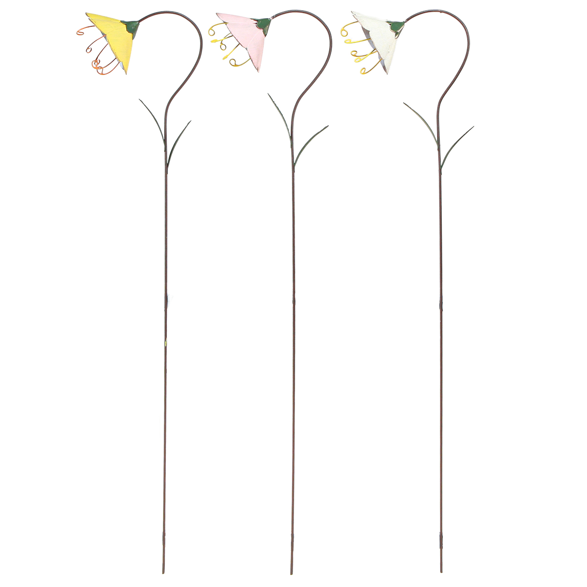 Gartenstecker Blume Metallblumen Gelb Rosa Weiß 49cm 3 St