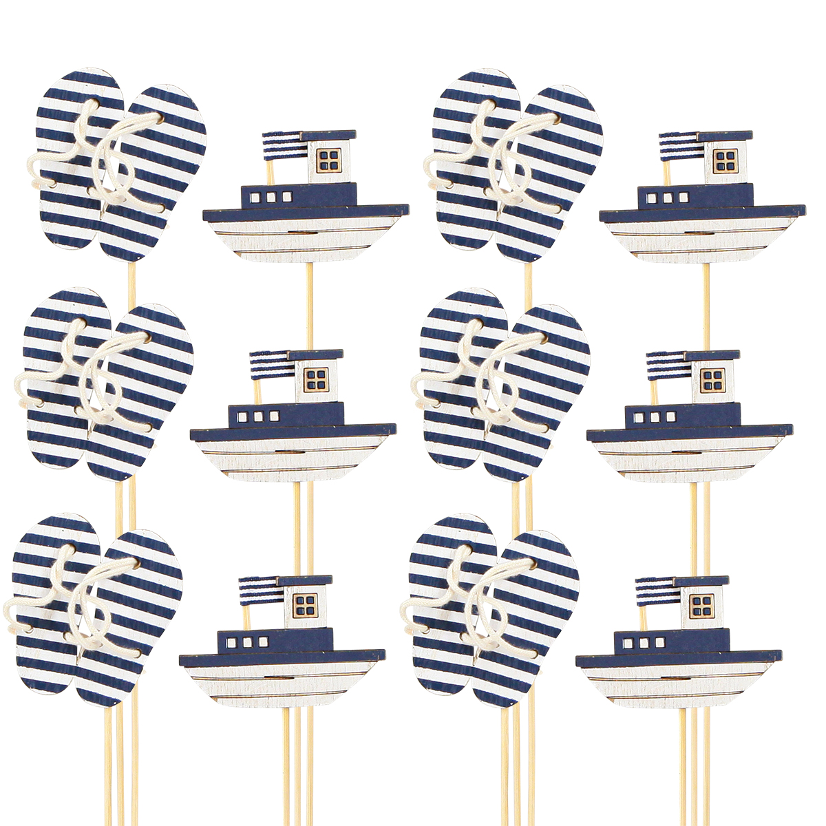 Gartenstecker maritim Holz Flip Flops Boot Blau Weiß 8cm 12 St