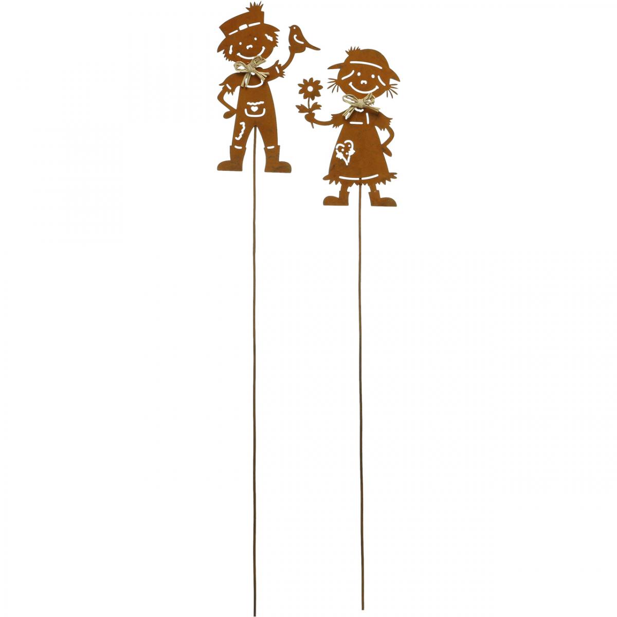 Gartenstecker Rost Optik Gartendeko Mädchen und Junge 4St