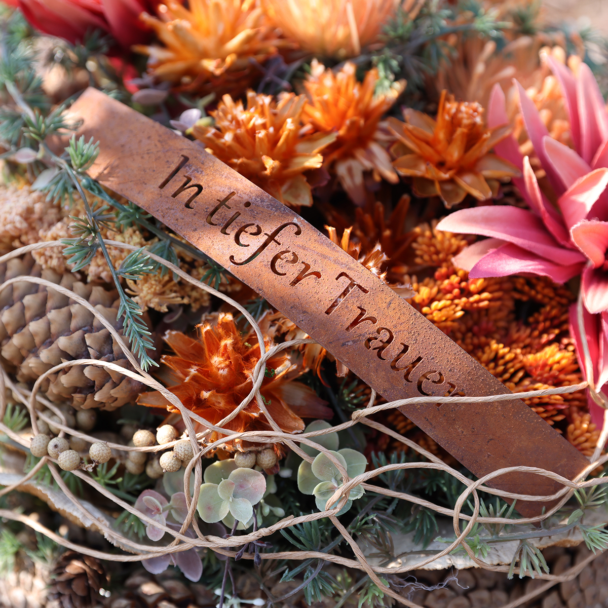 Gedenkspruch-Anhänger „In tiefer Trauer“ Rost 25×3cm 6St