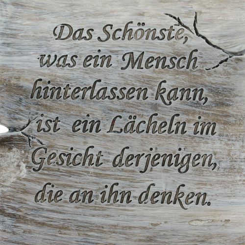 Gestatten Sie es Angehörigen und Trauernden, sich in Freude und Melancholie an die gemeinsame Zeit mit dem Verstorbenen zu erinnern, wenn Sie den Grabschmuck seiner letzten Ruhestätte betrachten. Diese Besinnung wird sicher auch alle ereilen, die diesen Gedenkspruch lesen, der in den Kunststein eingraviert ist und da lautet: „Das Schönste was ein Mensch hinterlassen kann, ist ein Lächeln im Gesicht derjenigen, die an ihn denken“.