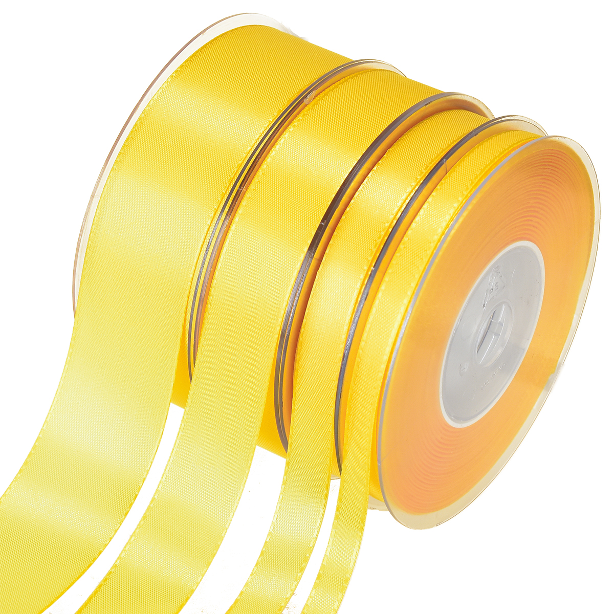 Das Geschenk- und Dekorationsband in Gelb wird in verschiedenen Breiten angeboten, die Sie oben rechts im Reiter aussuchen können. Jedes Variante besitzt dabei eine Länge von etwa 50 Metern.