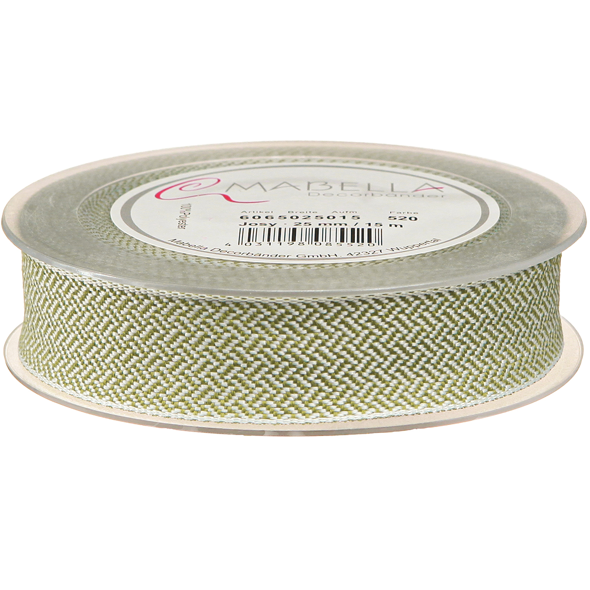 Produktname: Geschenkband Fischgrätmuster Dekoband Weiß Grün 25mm 15m