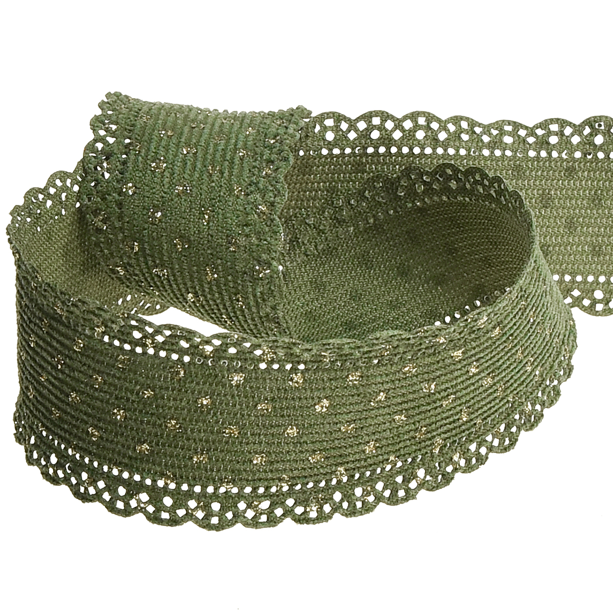 Heben Sie Ihre Geschenke hervor oder veredeln Sie Ihre Dekoration mit unserem exquisiten Dekoband: dem grünen Band mit goldenen Punkten und Spitze. Ein Highlight in jeder Geschenkverpackung und bei jeder Deko-Kreation!