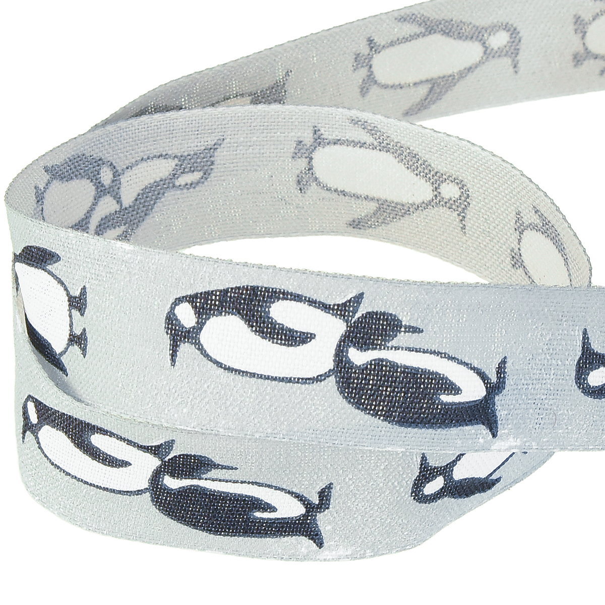 Produktname: Geschenkband Pinguine Weihnachtsband Stoff 25mm 15m