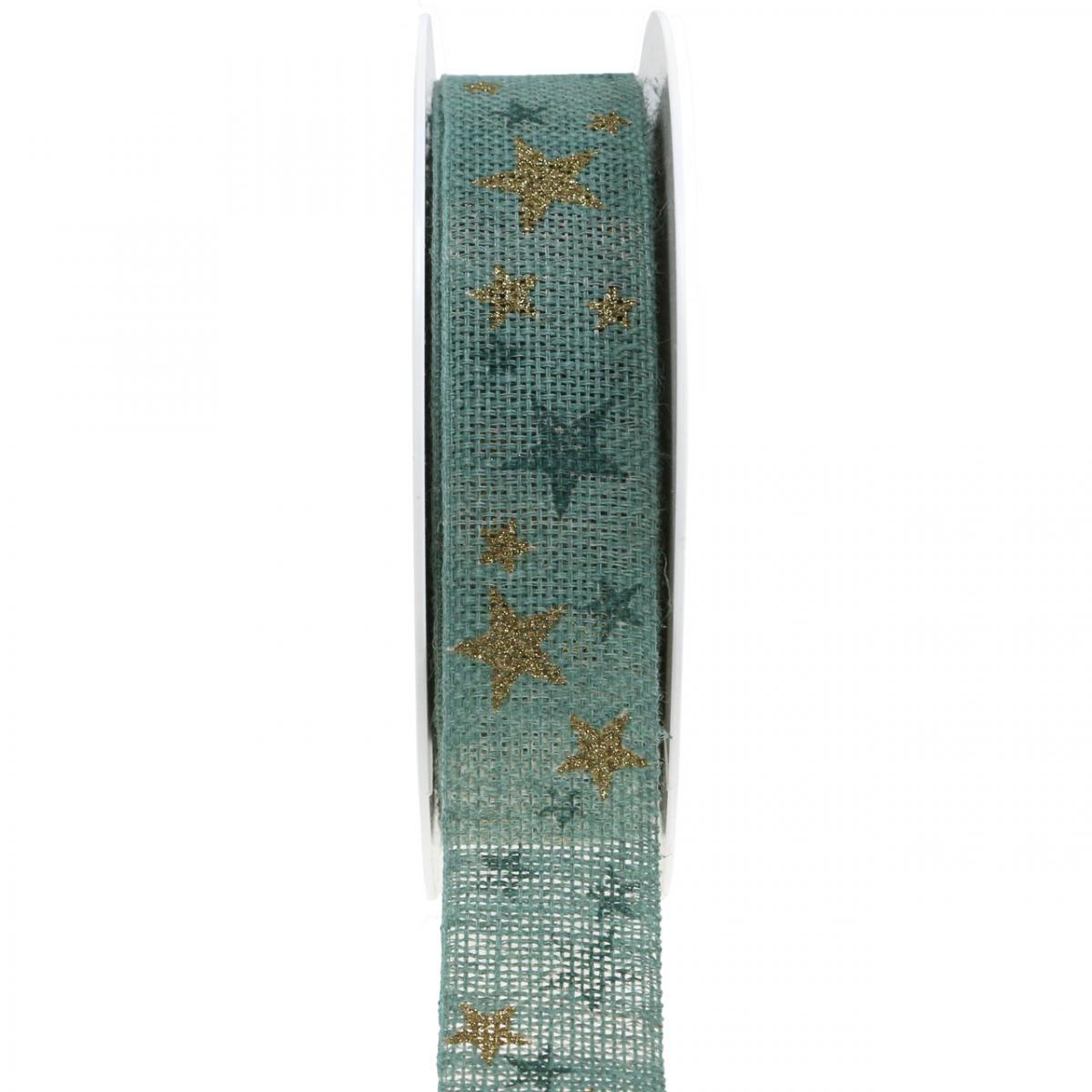 Dieses Schleifenband besteht aus verwobenem Leinen und Baumwolle, also nachwachsenden Rohstoffen. Auf dem blauen Stoffband sind dunkelblaue und goldene Sterne zu sehen, die glitzern. Dadurch hat das Leinenband zugleich ein festliches und ein rustikal-natürliches Flair und eine angenehm raue Beschaffenheit.