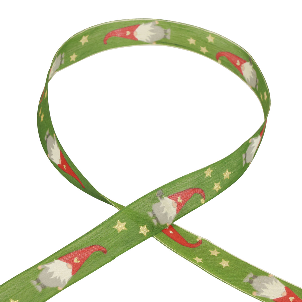 Geschenkband Weihnachtsband Wichtel Grün 25mm 20m