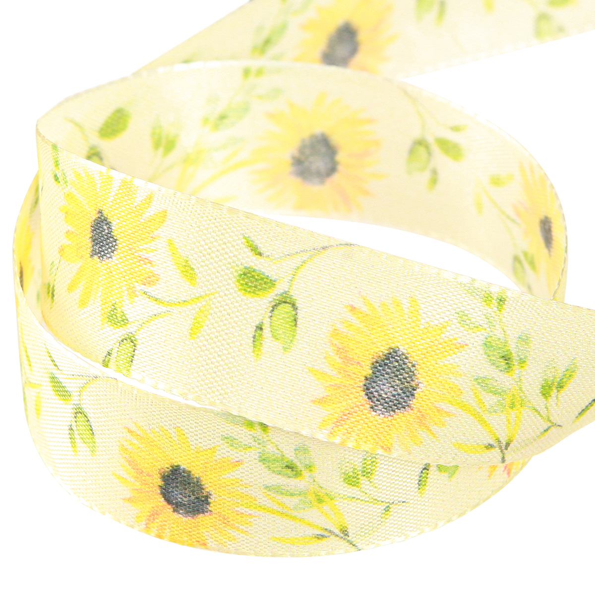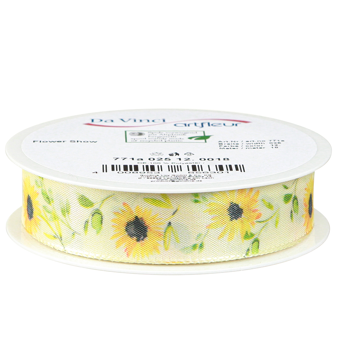 Produktname: Geschenkband Sonnenblumen Seidenband Gelb 25mm 18m