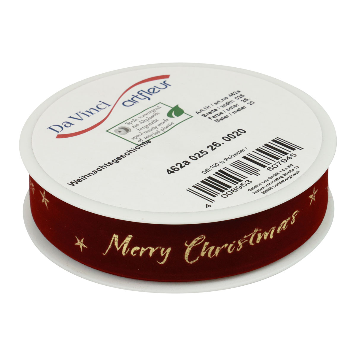 Produktname: Geschenkband Weihnachtsband Rot Samtband 25mm 20m
