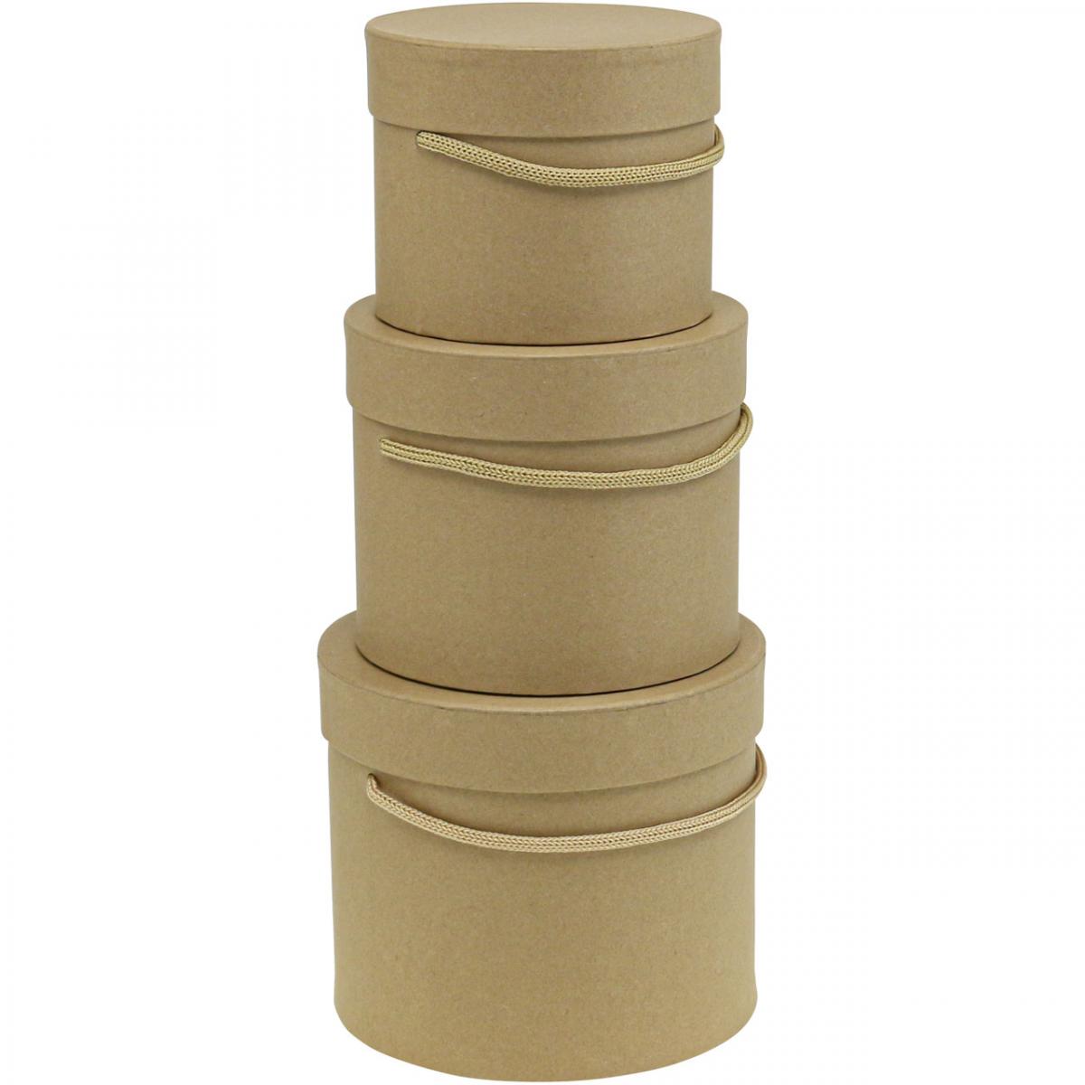 Geschenkbox rund Blumenbox Beige Ø12,5/14,5/16,5cm 3er-Set