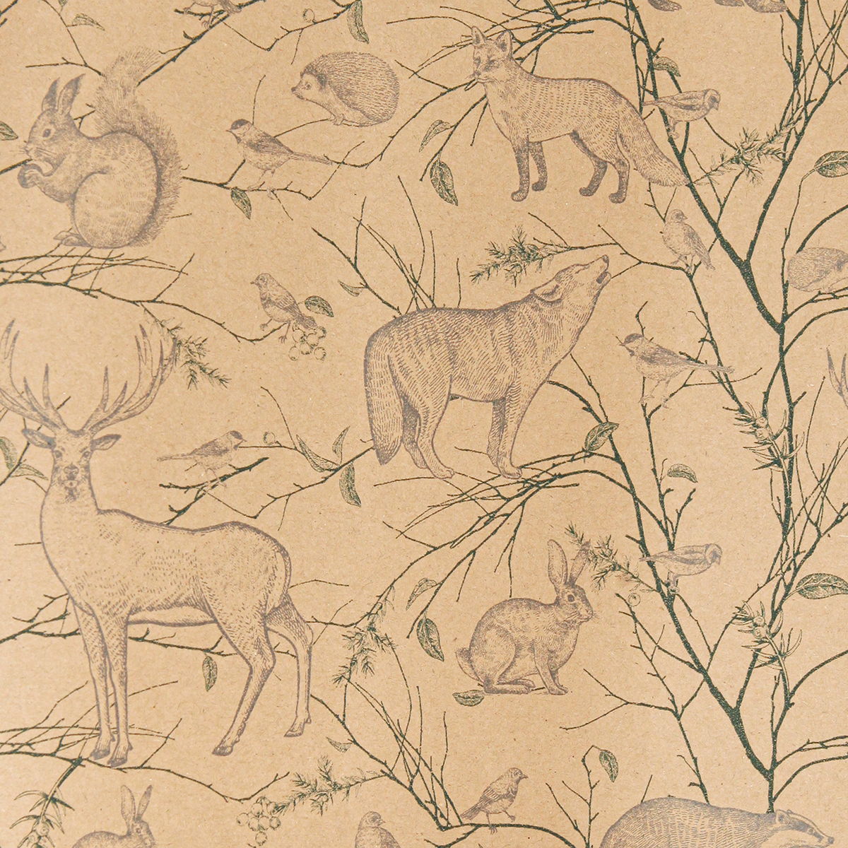 Produktname: Geschenkpapier Tiere Wald in Braun Blau 70cm x 200cm