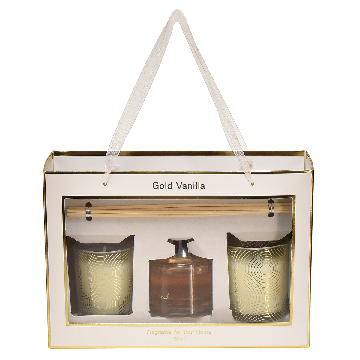 Das Set aus Raumduft-Stäbchen und Duftkerzen mit Vanille-Note eignet sich wunderbar zum Verschenken oder Dekorieren zuhause, im Hotel oder für Einrichtungen im Wellnessbereich.