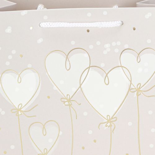 Diese stilvolle Geschenktüte „Just Married“ in Beige bietet die ideale Verpackungslösung für Hochzeitsgeschenke. Sie vereint Eleganz und Funktionalität, sodass Sie Ihre Geschenke stilvoll und sicher präsentieren können. Mit einem Design mit weißen Herz-Luftballons und goldener Aufschrift verziert ist, verkörpert diese Geschenktasche alles, was romantische Hochzeitsfeiern so besonders macht und wirkt zugleich zeitlos modern. Die Maße von circa 18×10×23 cm ermöglichen es, auch etwas größere Geschenke sicher zu verstauen. Die robusten weißen Textilkordeln und der verstärkte Boden garantieren Stabilität und Langlebigkeit. Diese Geschenktasche ist nicht nur eine Verpackung, sondern ein stilvolles Accessoire, das die Feierlichkeiten elegant bereichert. Ob als Deko für den Geschenktisch oder als Tragetüte für Geschenke, diese Tasche ist eine erstklassige Wahl für alle, die Wert auf Details legen.