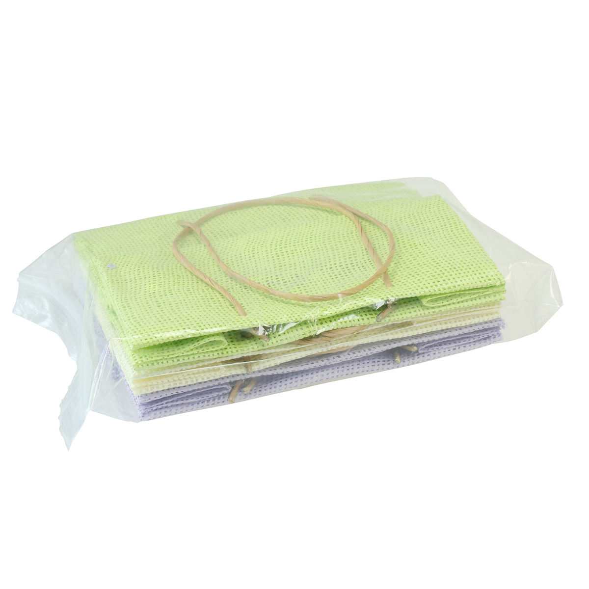 Produktname: Geschenktüten gewebt mit Henkeln Grün, Gelb, Lila 20×10×10cm 6St