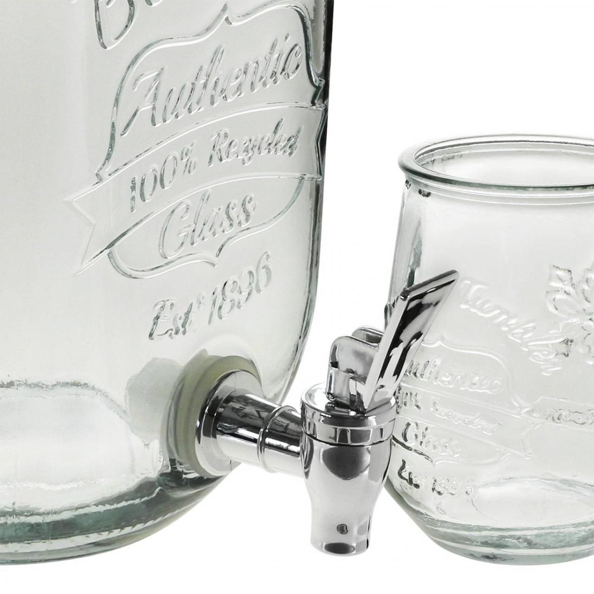 Getränkespender Glas mit Zapfhahn Set mit 4 Trinkgläsern H25,5cm