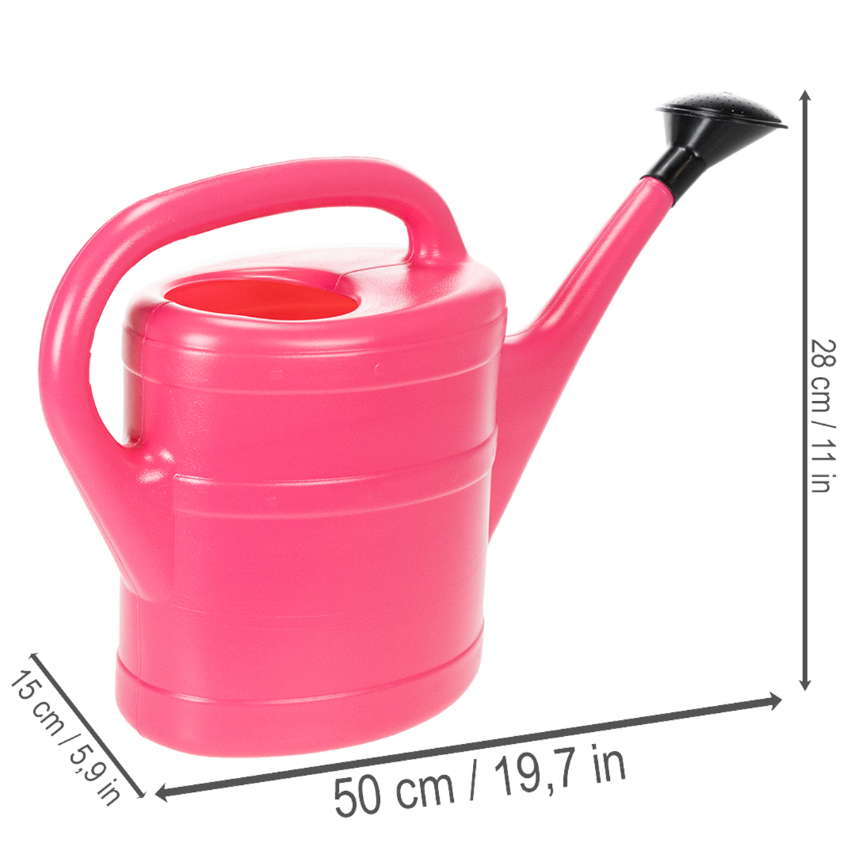 Die Gießkanne in Pink fasst bis zu 5 Liter und hat neben ihrem Bügel und dem Hals noch einen schwarzen Brausenaufsatz. Der leichte Spritzkrug kann auch ohne Bedenken draußen gelagert werden, da der Kunststoff wetterfest ist.