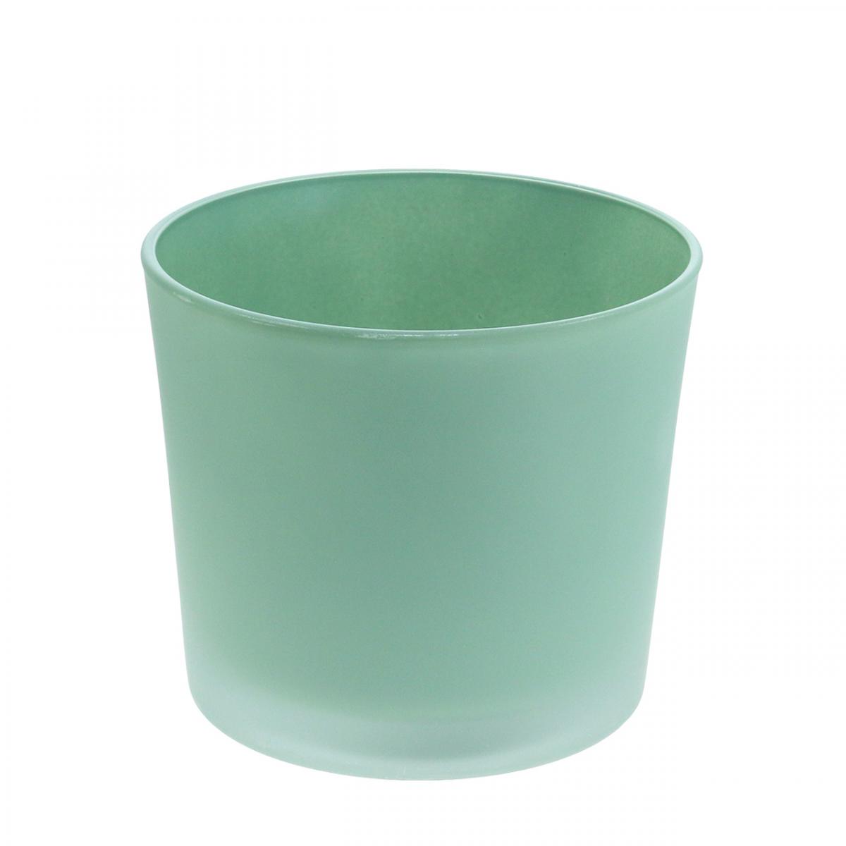Glas Blumentopf Grün Übertopf Glaskübel Ø14,5cm H12,5cm