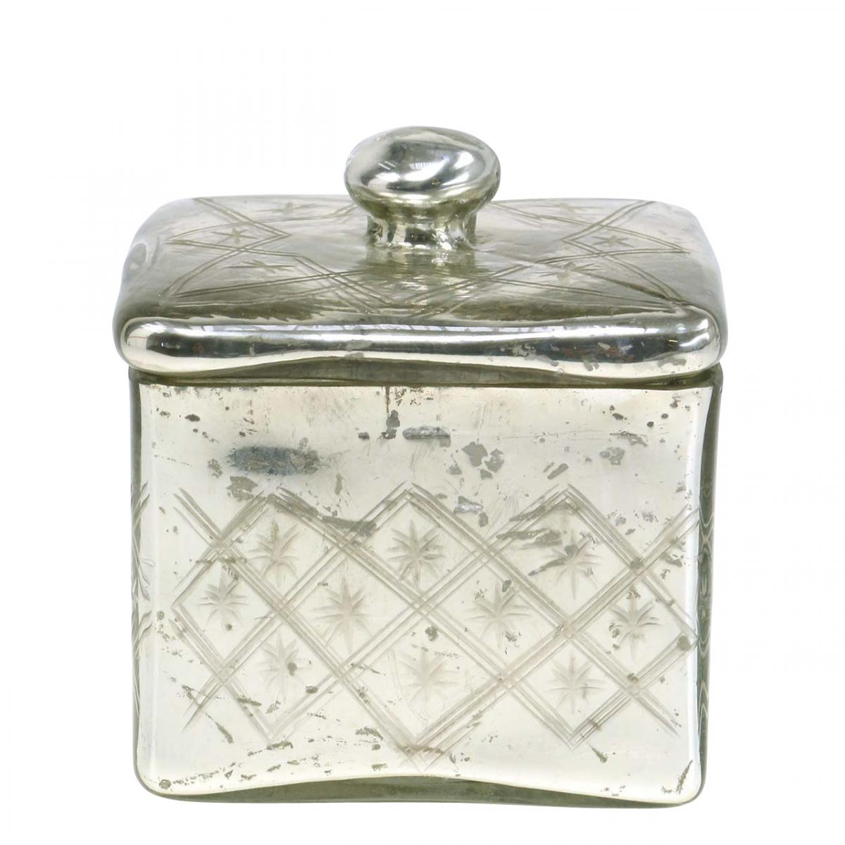 Glasdose mit Deckel Shabby Glasdeko Champagner 14×14×14,5cm