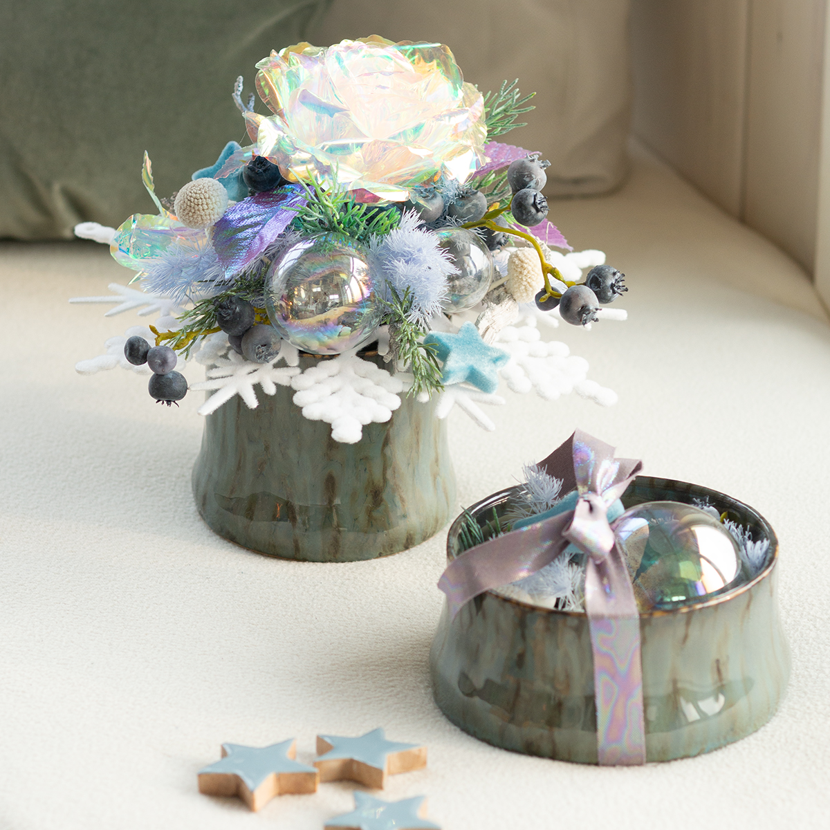 Verwendungszweck: Dekorationsartikel für die Weihnachtszeit und Silvester, inklusive Tischschmuck, Kränze, Figuren, Gestecke, Anhänger und floristische Arrangements.