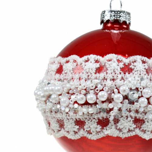 Glaskugel Rot mit Spitze und Perlen 3St
