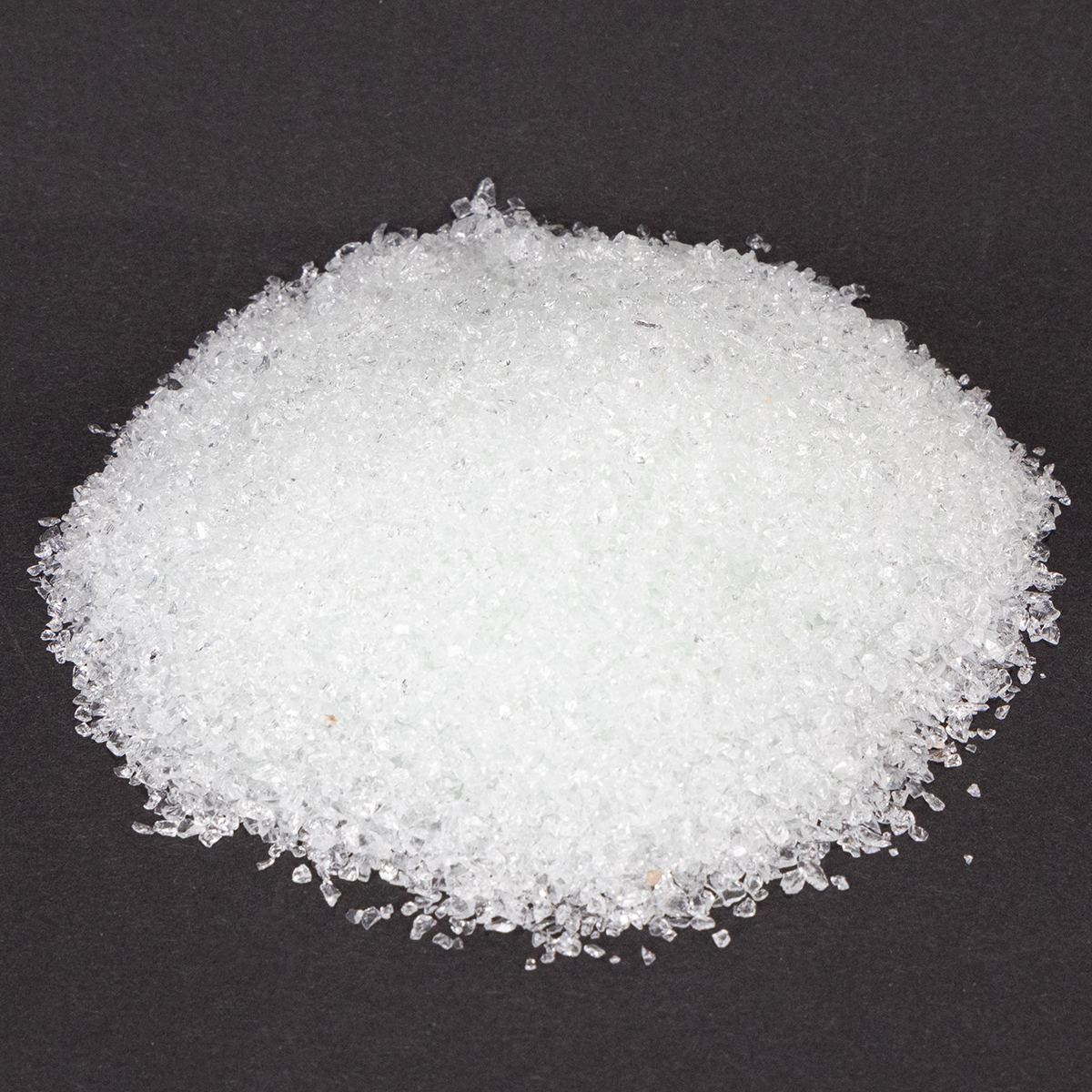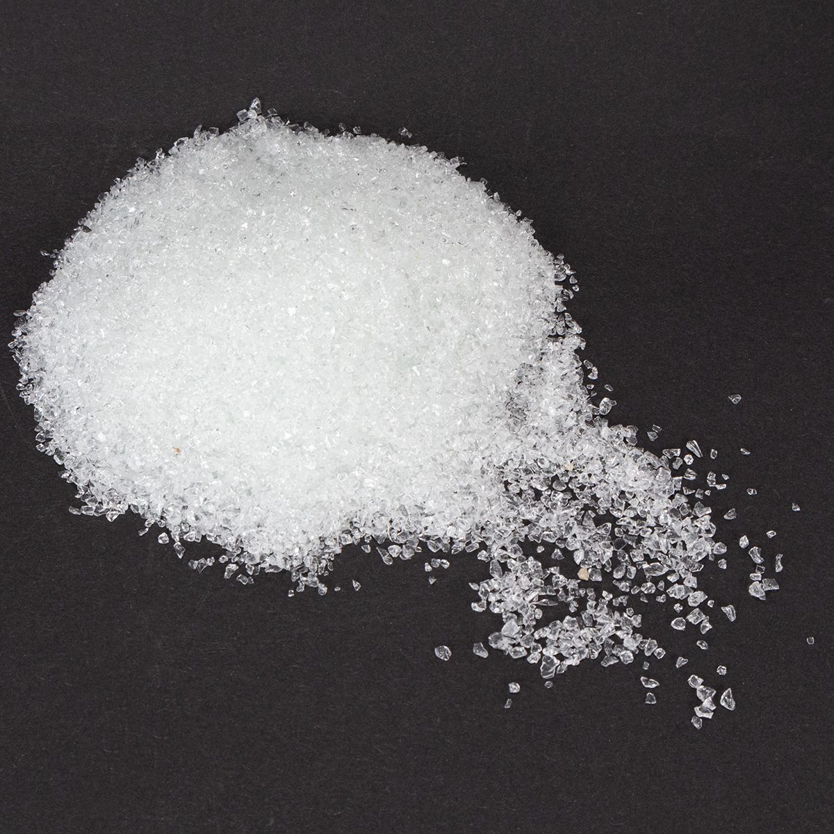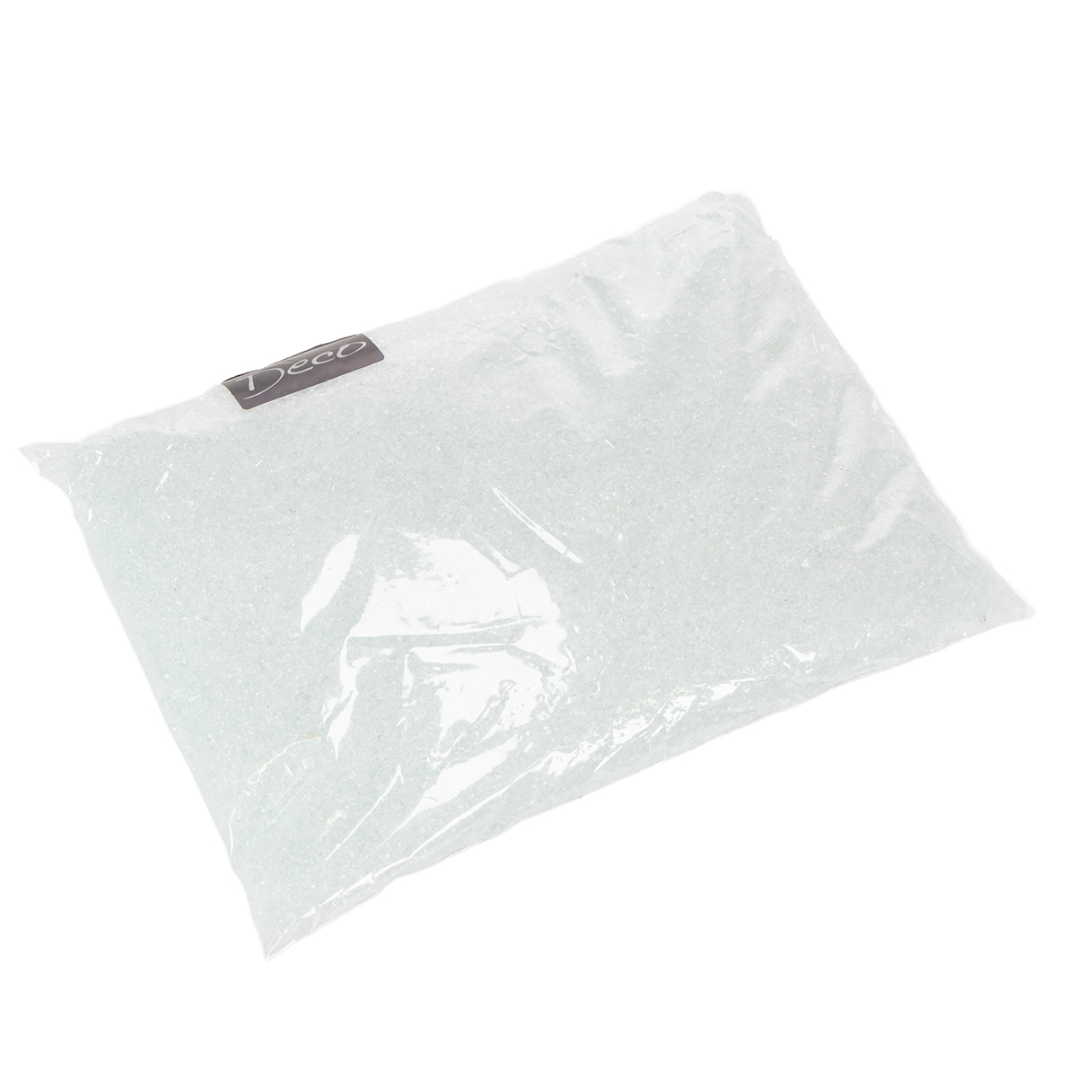 Die Glassteine in ihrer transparenten Naturfarbe werden in einem Beutel zu insgesamt 2 Kilogramm geliefert. Die einzelnen Steinchen können dabei circa zwischen 1 und 2 Millimeter groß werden.