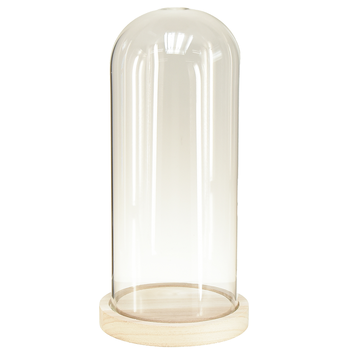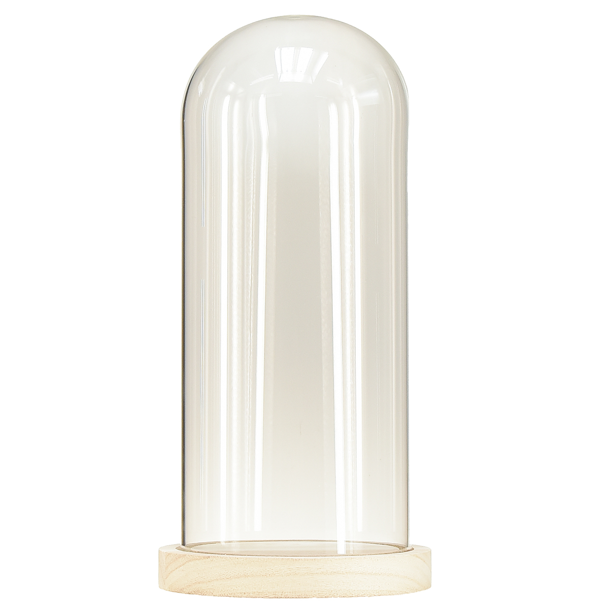 Glassturz Glasglocke mit Fuß Holz Klar Ø14cm H28,5cm