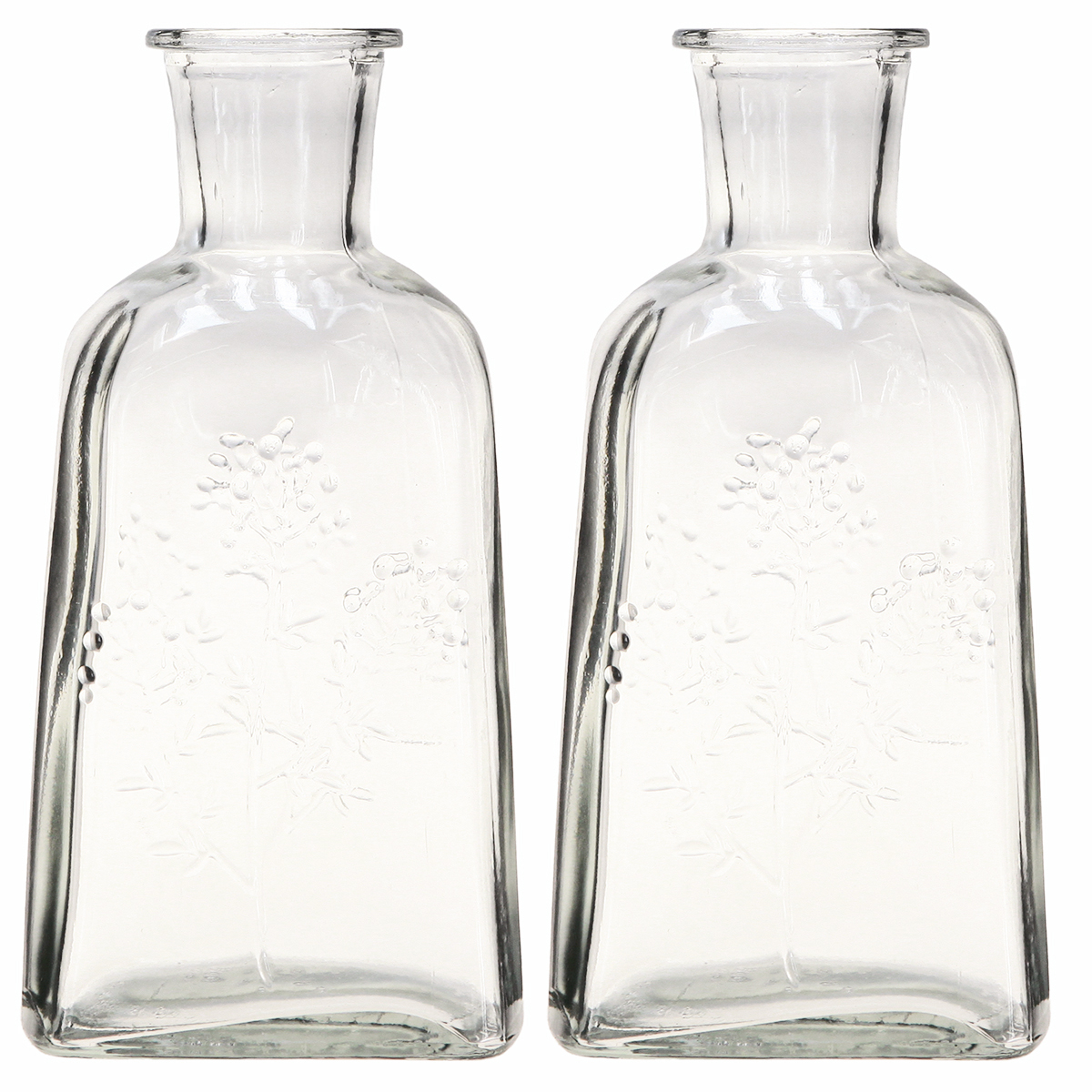 Glasvase Flaschenvase mit Motiv Vase Glas Klar H19cm 2St