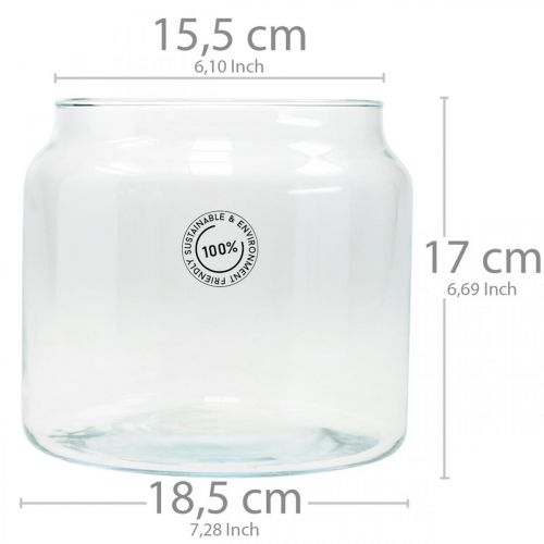 Die Vase ist aus klarem, zu 100 Prozent recyceltem Glas gefertigt und in ihrer Form sehr zeitlos und edel. Unten sehr breit und oben sich leicht verjüngend, bietet die Glasvase viel Platz für Ihre Dekoideen. Sie können sie ganz schlicht als Blumenvase nutzen oder mit Streudeko als Bodengrund und schönen LED-Stumpenkerzen als Dekoglas verwenden. Gestalten Sie eine kleine Dekolandschaft mit Frühblühern, kleinen Häschen und Dekoeiern für die Frühlingsdeko zu Ostern. Setzen Sie im Winter Kunstschnee, Rehfiguren und Tannengrün für die Adventsdeko in die große Vase aus Glas ein.