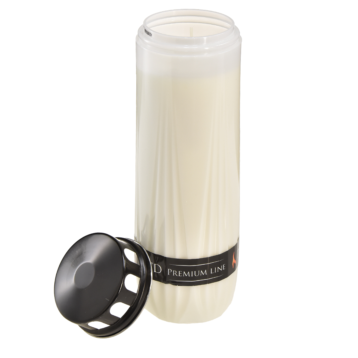 - Produktname: Grabkerze Weiß Deckel Schwarz Brenndauer 7 Tage H24cm