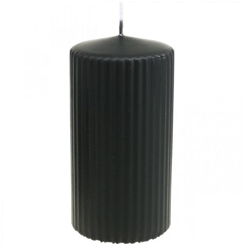 Stumpenkerzen Schwarz Rillenkerze 70/90mm 4St Set, Dekoration, Advent, rauchfrei