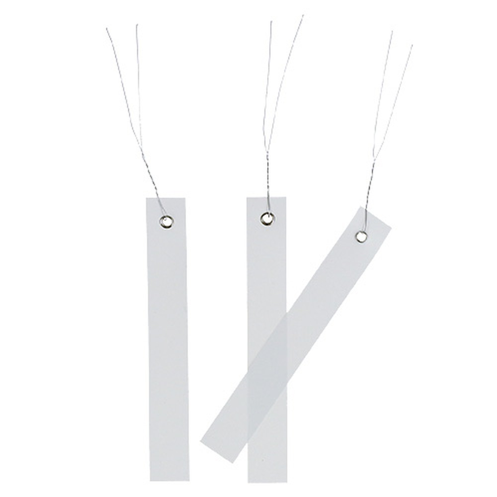 Die Hänge-Etiketten in Weiß befinden sich zu insgesamt 250 Stück in einem Beutel und haben in etwa die Maße 20 x 140 Millimeter. Die Drahtschlaufe hat dabei eine Länge von ungefähr 10 Zentimetern. Selbstverständlich können Sie die Schilder auch kürzen, sollten Sie in dem einen oder anderen Fall etwas zu lang sein.