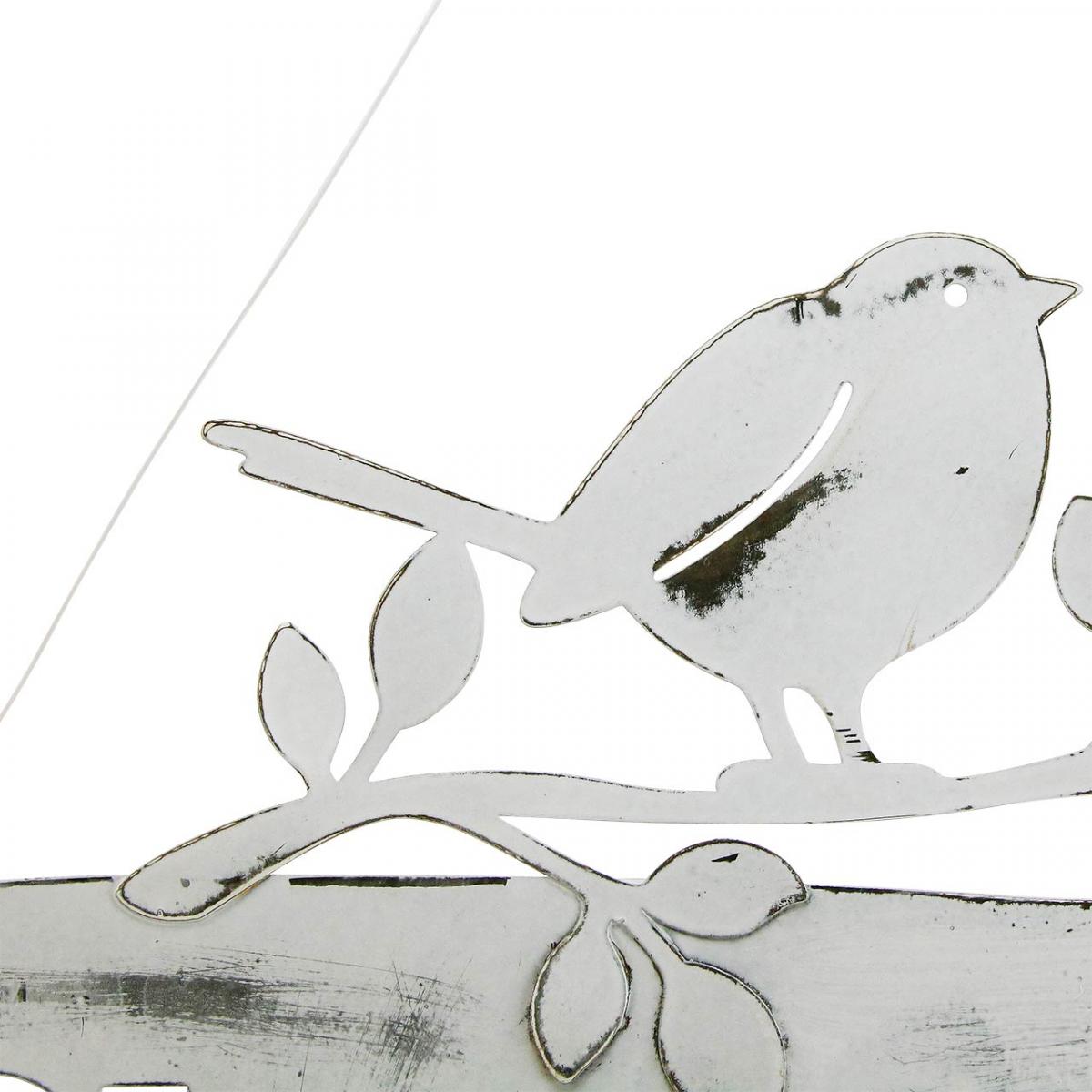 Produktname: Metall Schriftzug Deko zum Hängen mit Vogelmotiv für Fenster und Wand
