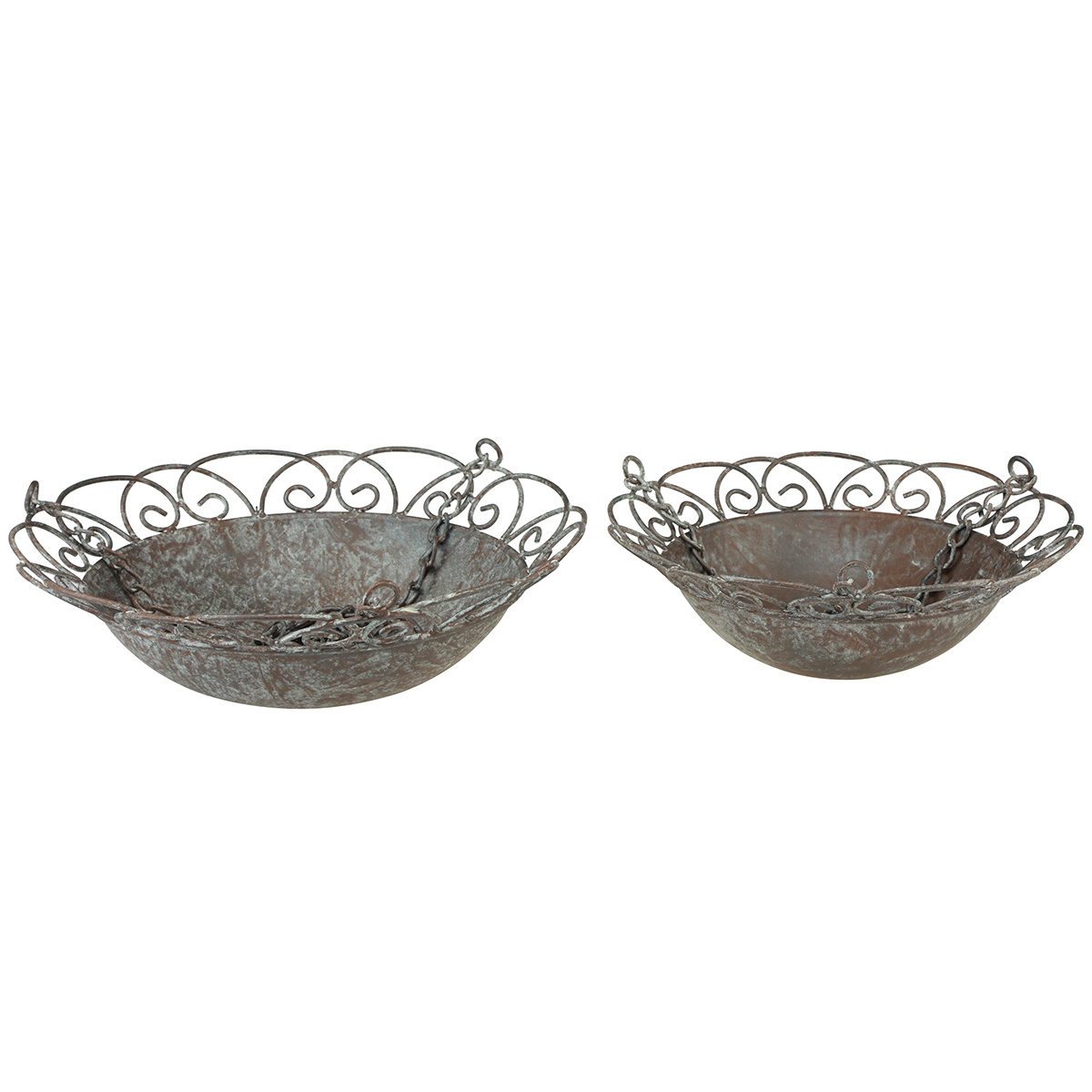 Sie erhalten die Deko-Schale zum Hängen zu 2 Stück im selben Stil und verschiedenen Größen. Platzsparend lässt sich die kleine in die größere ganz einfach legen.