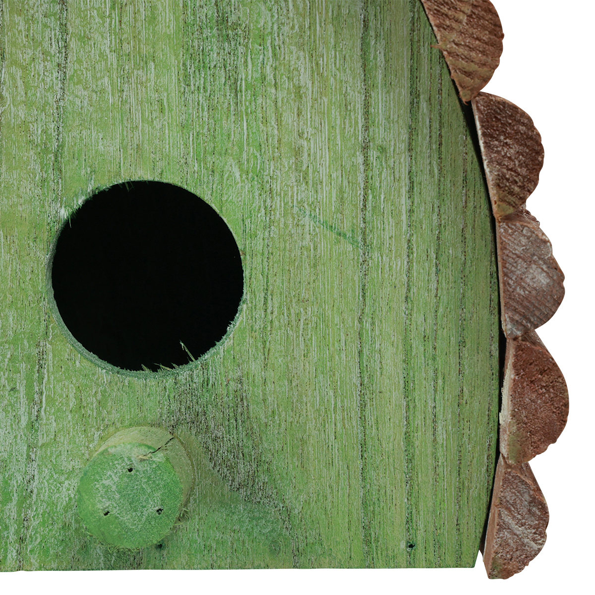 Hängedeko Vogelhaus mit rundem Dach Holz Grün Braun 16,5×10×17cm