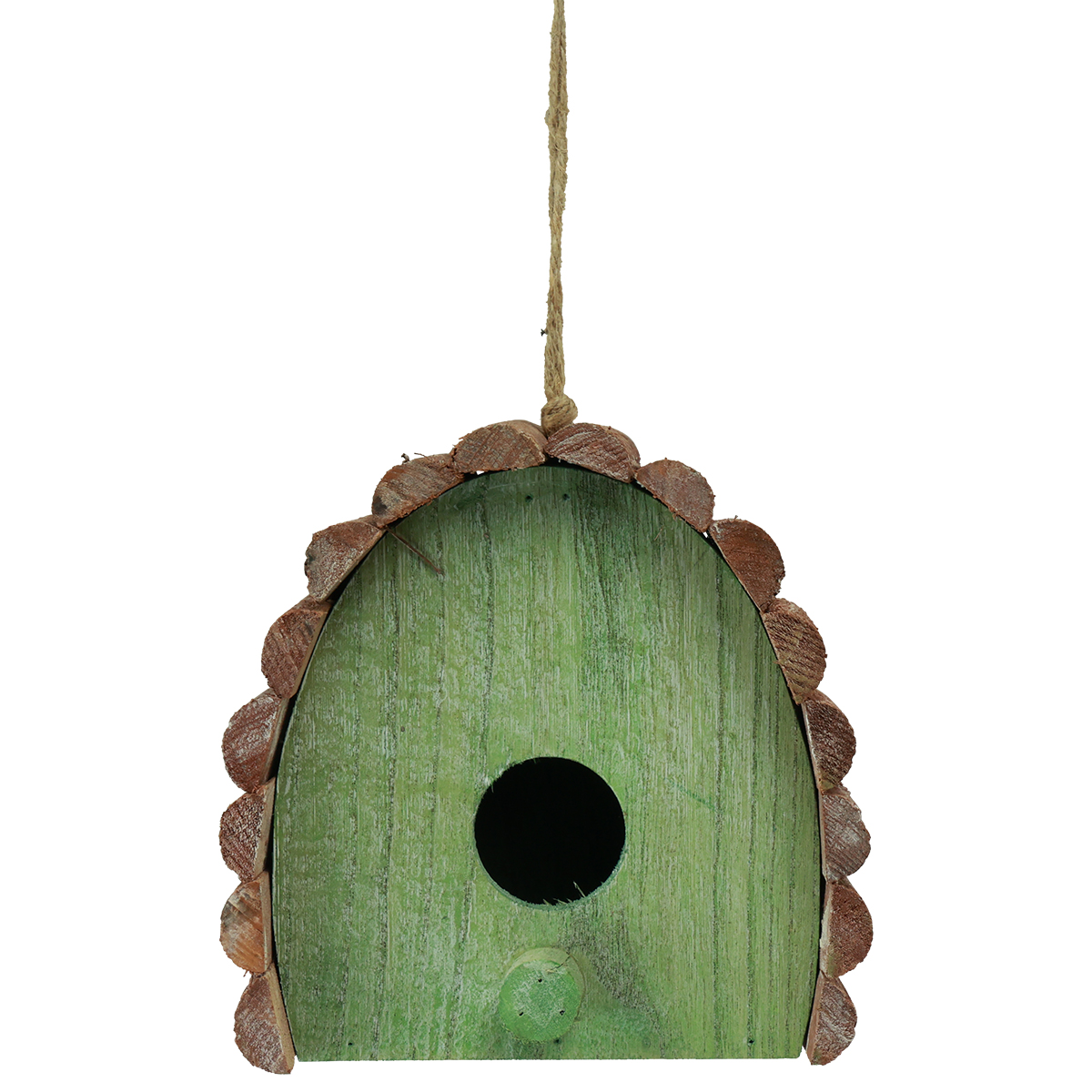 Produktname: Hängedeko Vogelhaus mit rundem Dach Holz Grün Braun 16,5×10×17cm