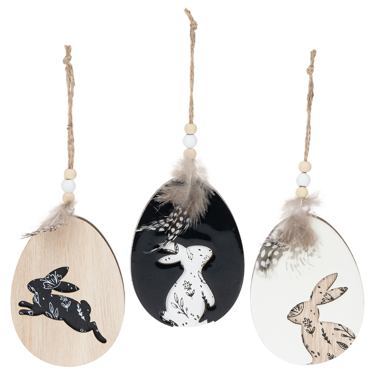 Hase im Ei Holz Ostereier zum Hängen Weiß Schwarz 10cm 6 St
