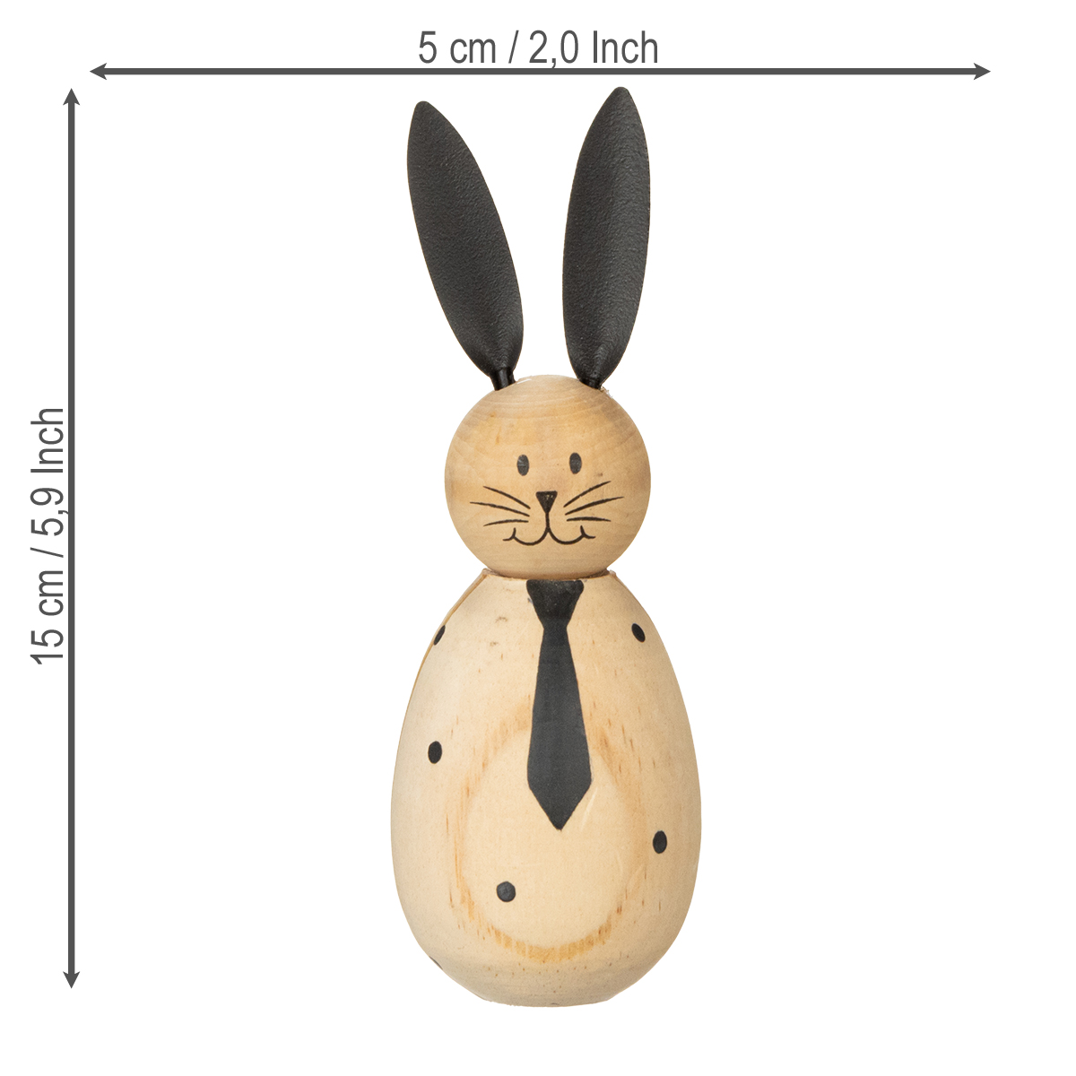 Mit einer Größe von 15 cm verwandeln sie Fensterbänke, Wohnzimmertische oder Kommoden in dekorative Highlights. Einzeln platziert verleihen sie dem Raum einen charmanten Akzent, während sie im Duo oder in Kombination mit anderen natürlichen Materialien – wie Moos, Zweigen oder Blumen – eine lebendige und harmonische Szenerie schaffen. Besonders zu Ostern verleihen sie Ihren Arrangements das gewisse Etwas. Doch dieser elegante Holzlook passt auch zum skandinavischen oder minimalistischen Einrichtungsstil und bleibt so das ganze Jahr über eine geschmackvolle Wahl.