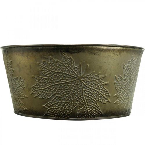 Herbstschale, Metalltopf mit Blattdeko, Pflanztopf Golden Ø25cm H10cm