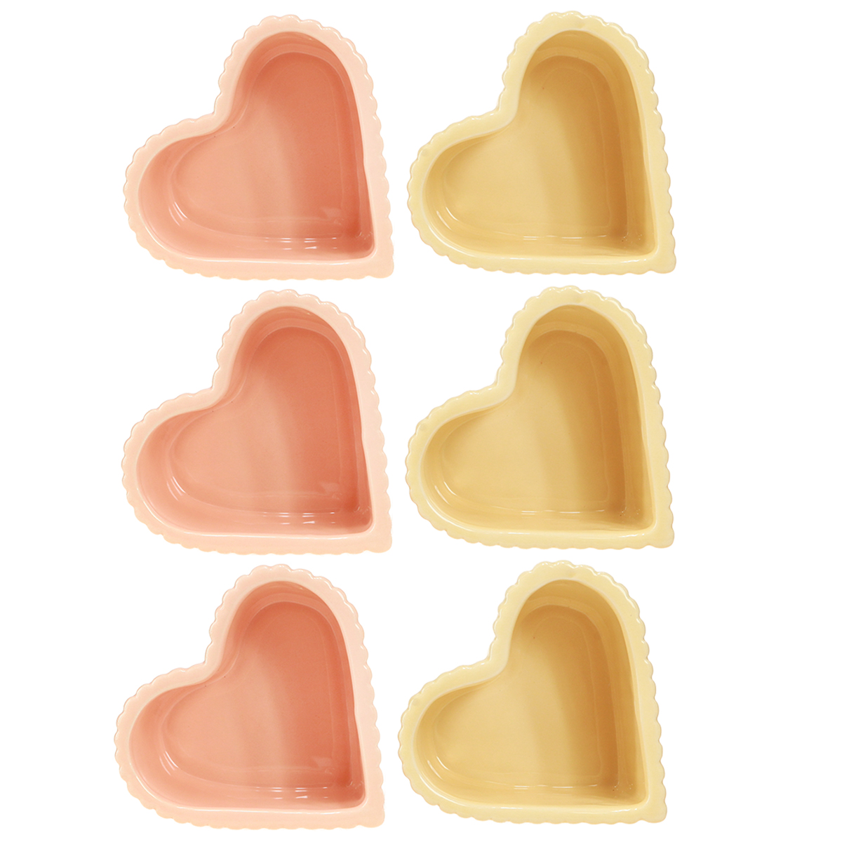 Fügen Sie Ihrer Inneneinrichtung mit den Herzen aus Keramik als Deko eine lebendige, romantische Note hinzu. Diese bezaubernden herzförmigen Schalen vereinen Eleganz und Verspieltheit in einem einzigartigen Design. Die harmonische Kombination der Pastellfarben Orange und Gelb versprüht Frühling und Freude, während das glänzende Finish die Schönheit der glasierten Keramik unterstreicht. Perfekt für DIY-Enthusiasten und Floristen, dienen diese dekorativen Keramik-Herzen als vielseitige Dekorationselemente für Wohnzimmer oder Hochzeiten. Mit ihrem Retro-Design erinnern sie an klassische Backformen, die jeden Raum stilvoll ergänzen. Lassen Sie sich davon inspirieren, wie diese Keramikgefäße in verschiedenen Wohnstilen Akzente setzen können, und verwandeln Sie jeden Tisch oder Anlass in ein kreatives Paradies.