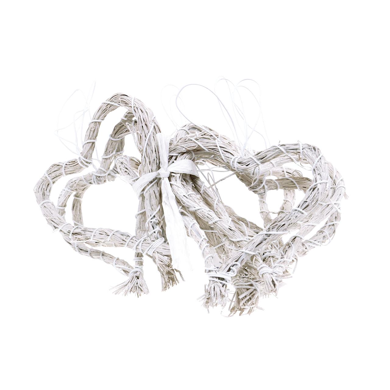 Herz aus Bast zum Hängen Weiß 10cm 12St