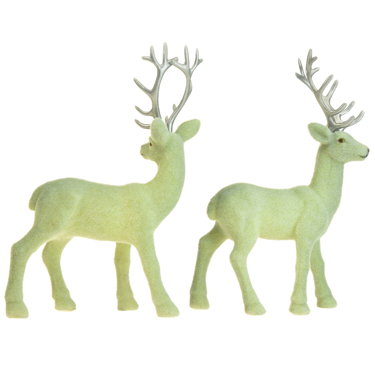Produktname: Hirsch Deko Rentier Grün Grau Kalb Beflockt 20cm 2er-Set