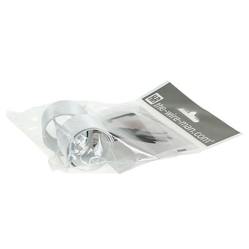 Die weiße Kunstseide harmoniert wunderbar mit dem Kleid der Braut oder Ausstattung der Brautjungfern. Damit Sie den Blumenschmuck für das Handgelenk auch auf das weiße Band anbringen können, befindet sich dort eine verschiebbare, flexible Kunststoffschnalle mit zwei Löchern. Hier können Sie dann eine schöne Dekoration aus Rosen, Gerbera, Orchideen oder Lilien hineinstecken und befestigen – und schon ist Ihre Handgelenkscorsage für die Hochzeit zum Selbermachen fertig!